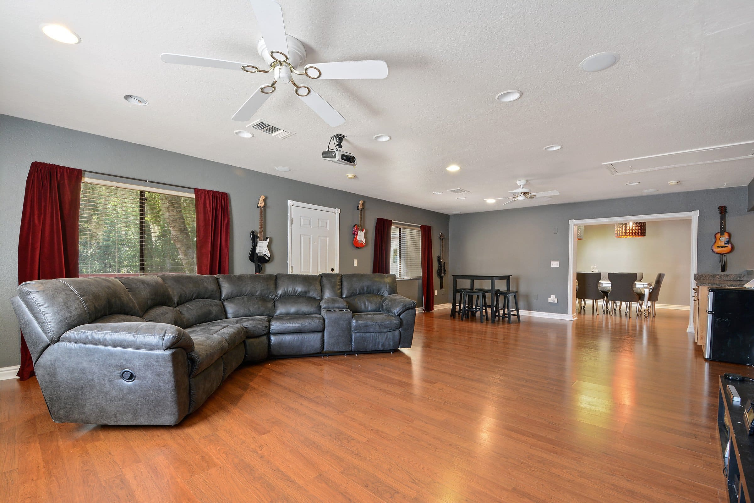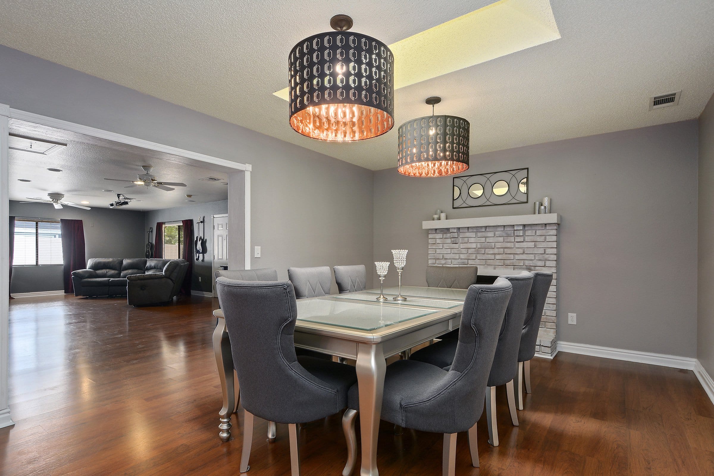 The formal dining room at 1006 Beckstrom Dr offers generous room for gatherings and includes a skylight, wood-burning fireplace, and coordinating light fixtures. Furthermore, just off the dining area, a massive family room/bonus room provides endless possibilities. Whether you envision a movie room, game space, or additional living area, this room adapts to your needs.