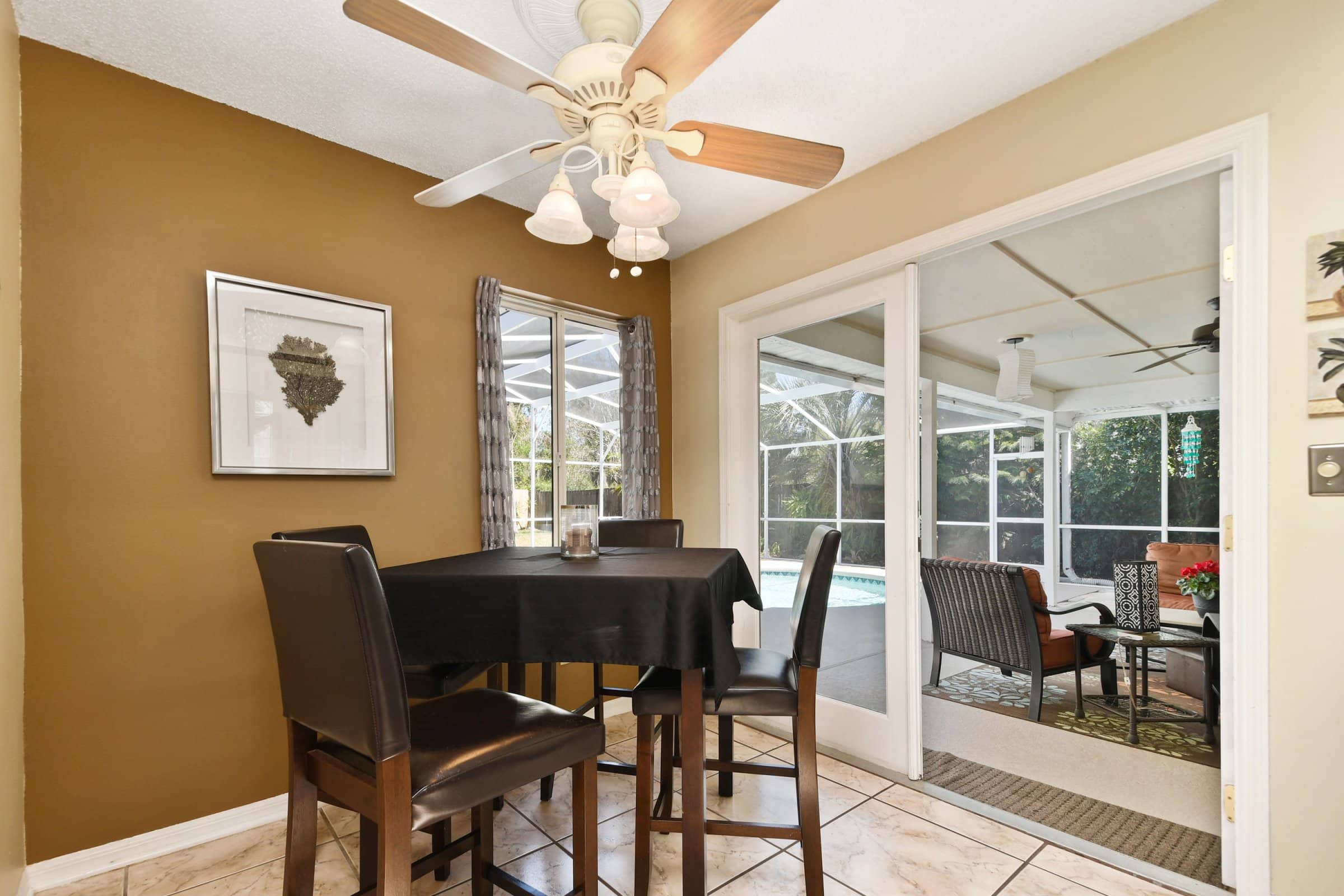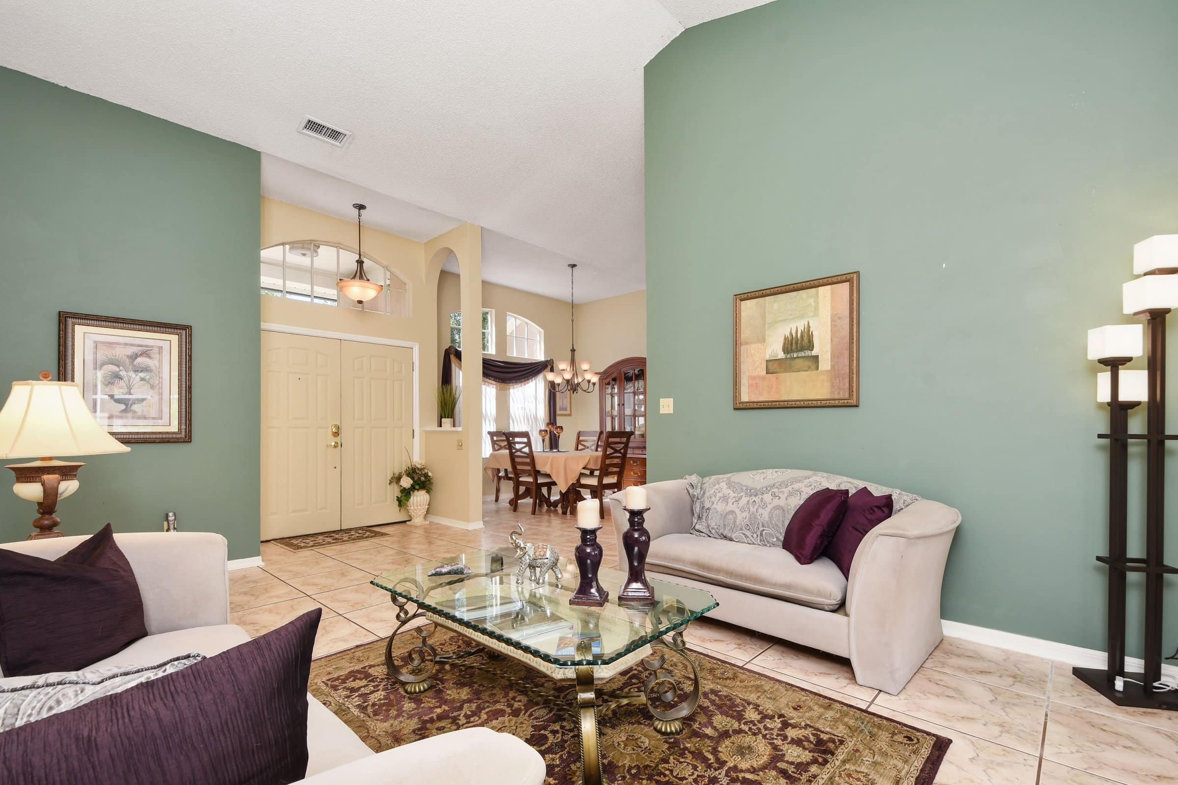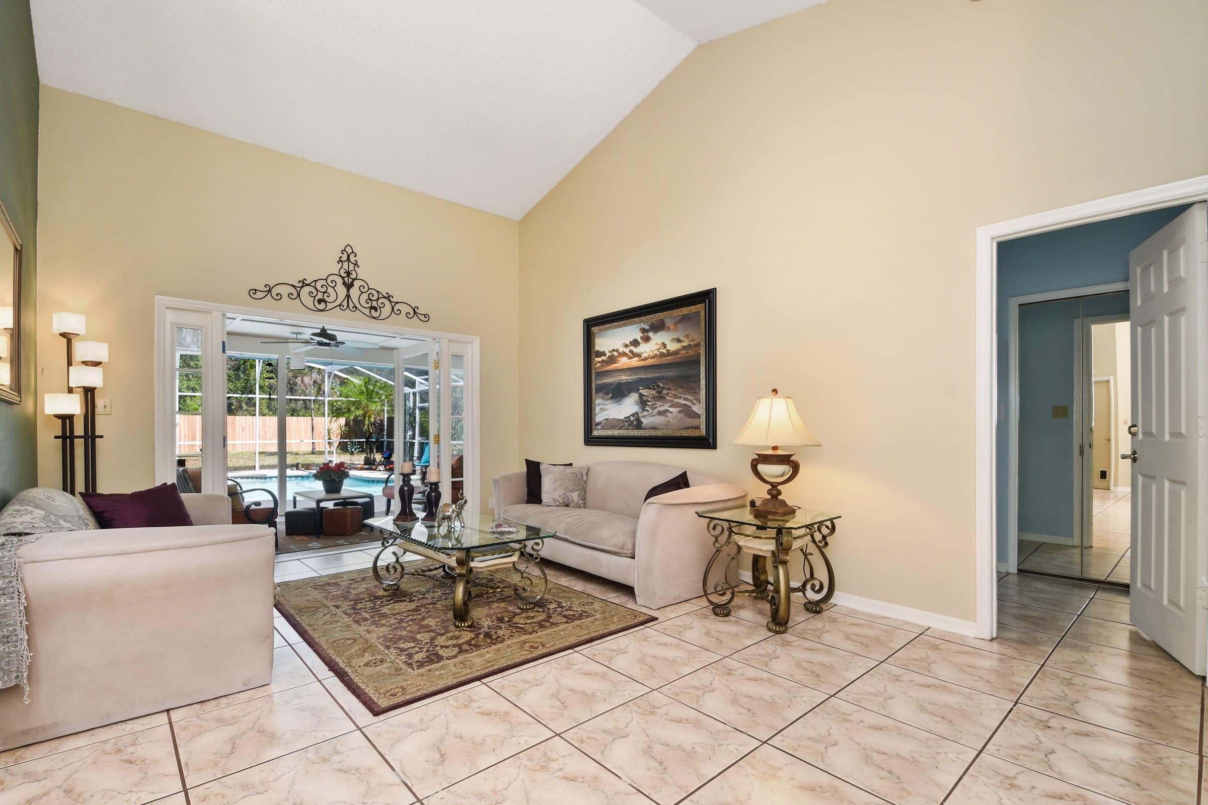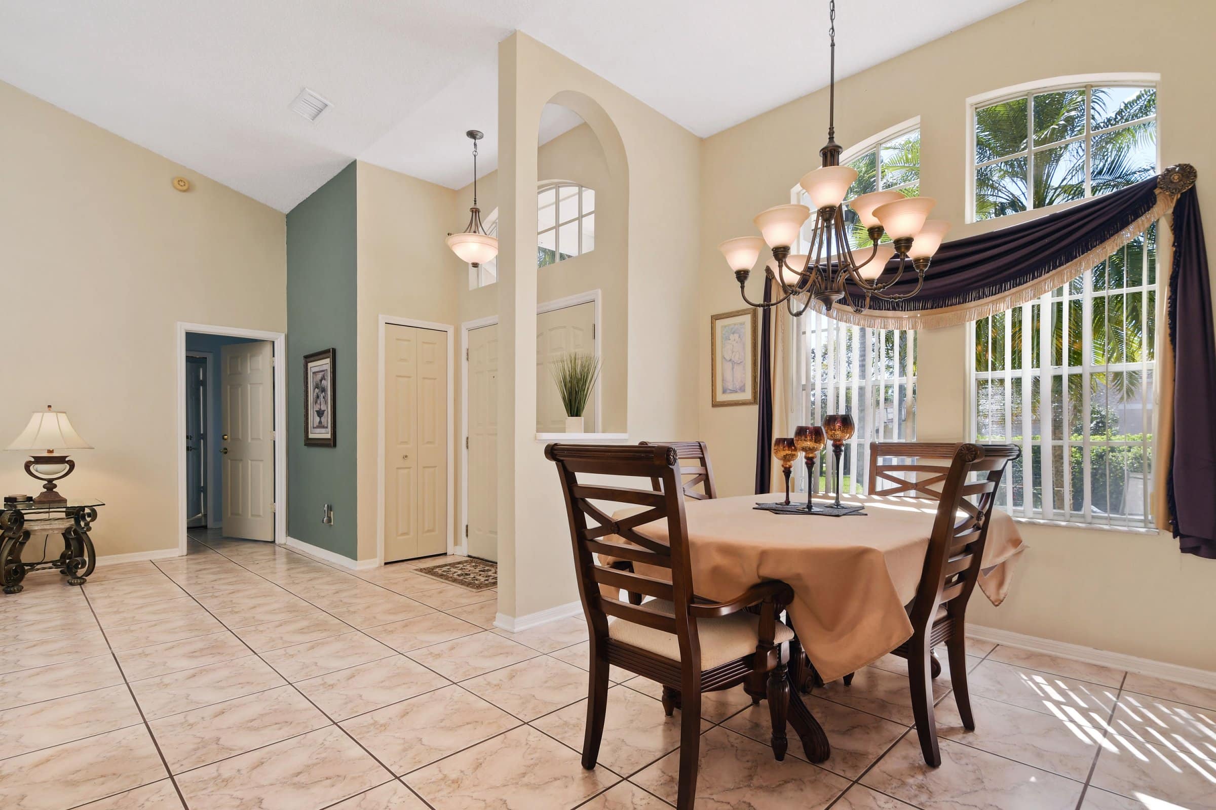 Step inside 1011 Jackson Creek Ct and immediately notice the tall, vaulted ceilings that enhance the sense of openness. Straight ahead, the formal living room welcomes you with abundant natural light and elegant French doors that lead to the patio and pool deck. The split floor plan ensures privacy, with the primary suite located just off the living room. Meanwhile, the secondary bedrooms and bathrooms are tucked away down the hallway near the family room. To the left of the foyer, the formal dining room features an upgraded chandelier and a large front-facing window, creating a perfect setting for gatherings and special occasions.