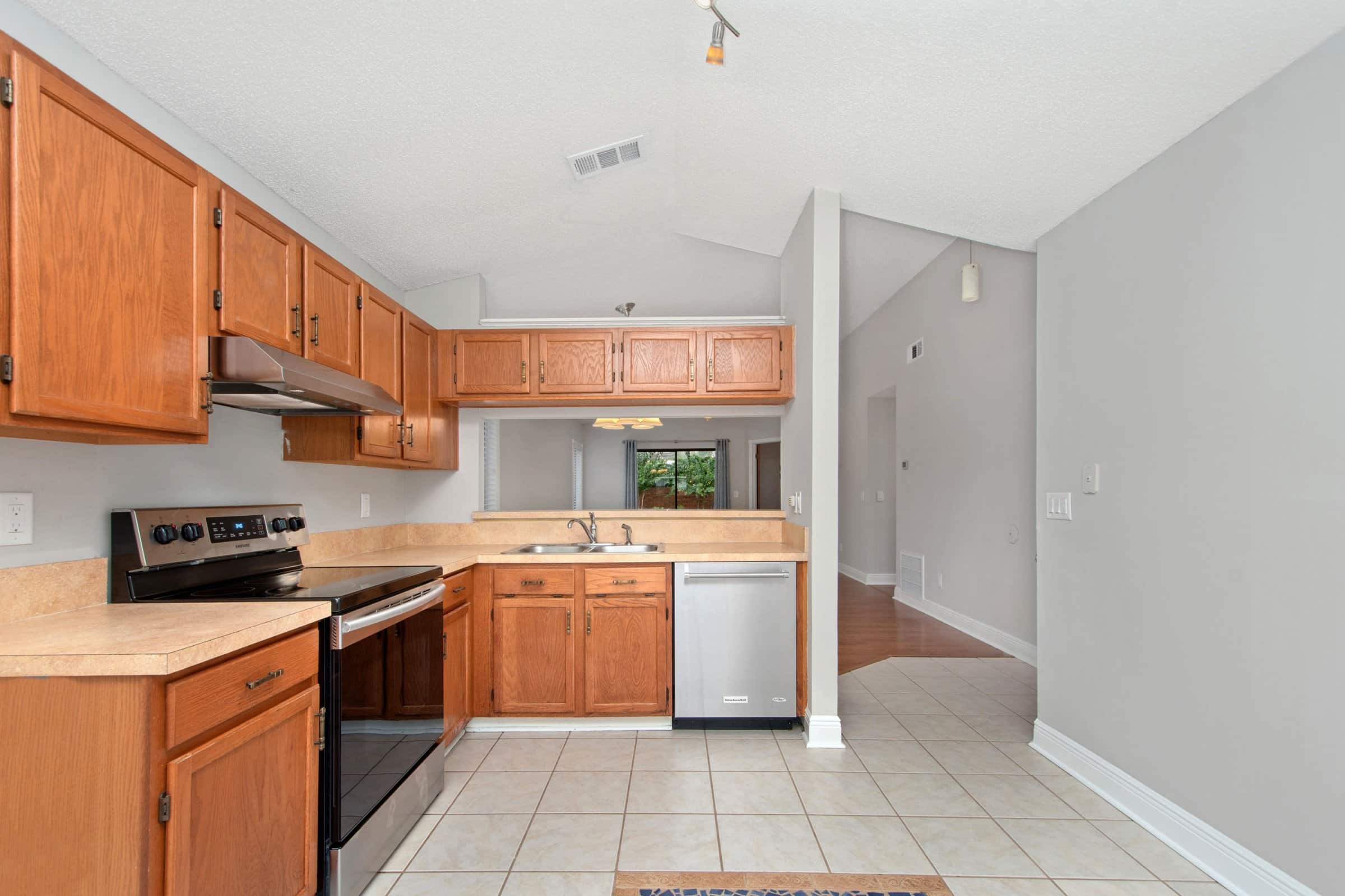 Inside 1028 Manigan Ave, the spacious kitchen features solid wood cabinetry, generous countertop space, and stainless steel appliances for everyday convenience. Furthermore, a functional breakfast bar overlooks the great room, making it easy to stay connected while entertaining. The great room seamlessly blends living and dining areas, creating an ideal environment for gatherings. Meanwhile, fresh paint, laminate flooring, and updated fixtures contribute to a cohesive and modern interior style. Natural light continues to brighten the rooms, enhancing their welcoming atmosphere. Each thoughtful detail contributes to the comfort and functionality found throughout the property. Altogether, the layout supports both daily living and special occasions.