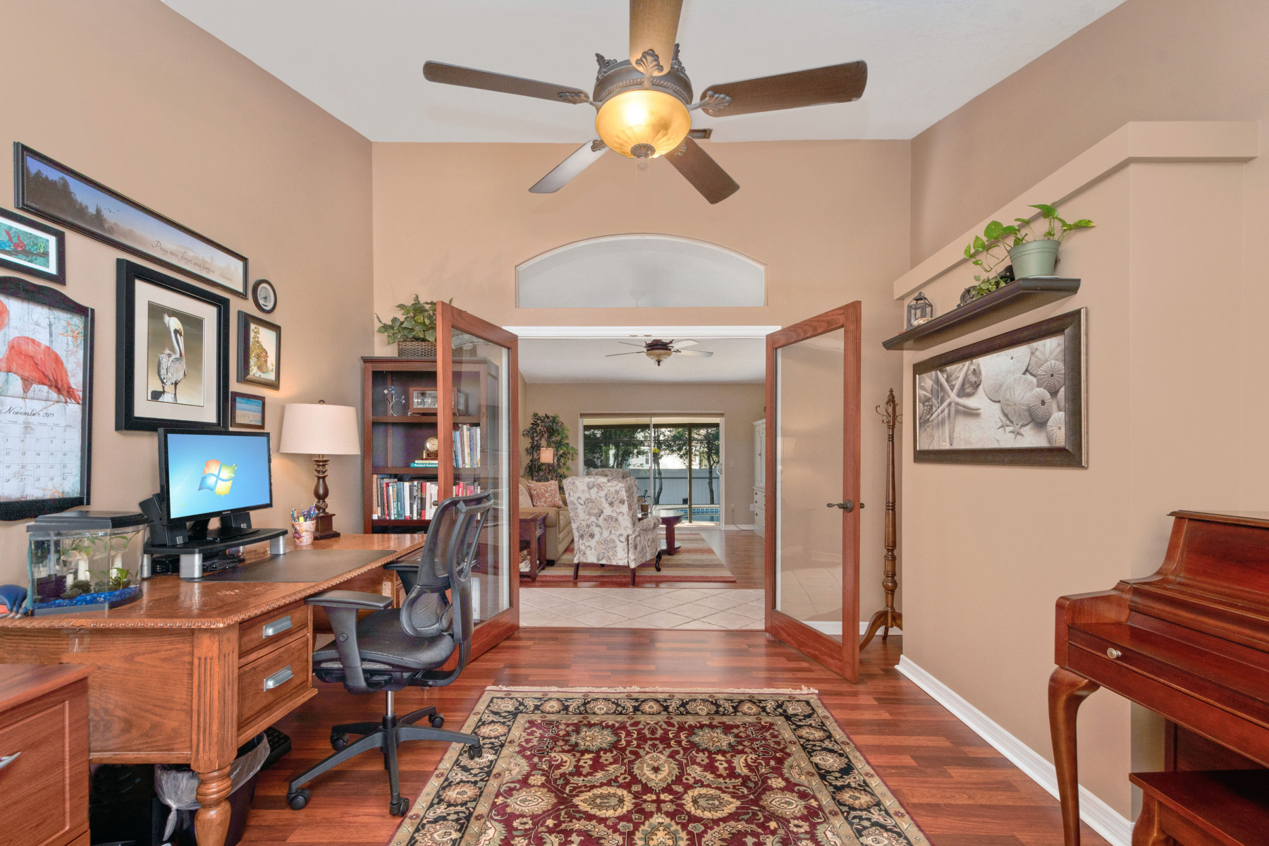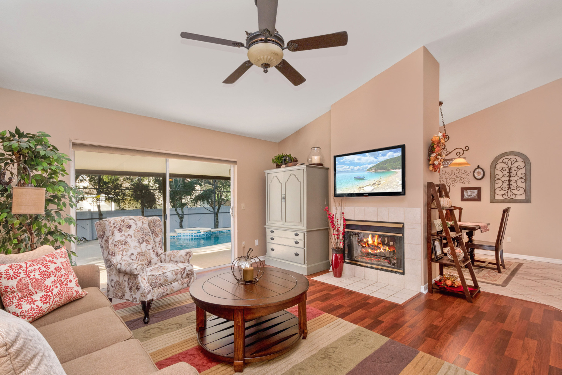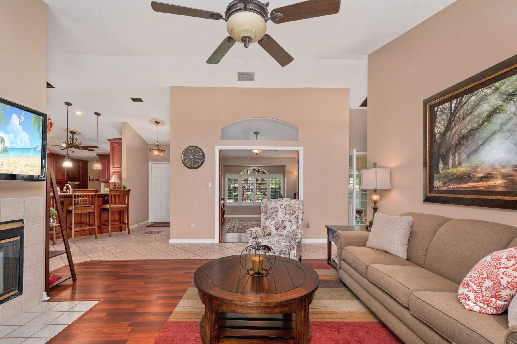 Moreover, the family room includes a double-sided fireplace shared with the dining area, adding both warmth and elegance during cooler months. An updated ceiling fan enhances comfort, while sliding doors provide easy patio access. Across the way, a spacious office or den offers flexibility—you could even convert it into a fourth bedroom if desired. With three bedrooms and two bathrooms, the layout ensures plenty of room for everyone. Clearly, 1043 Willa Lake Cir balances family functionality with stylish design.
