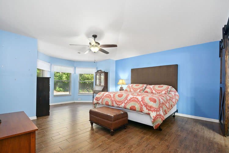 As you step inside 1440 Fort Smith Blvd, an expansive great room welcomes you with a seamless blend of living, dining, and kitchen spaces. Tall vaulted ceilings enhance the open feel, while large windows and a skylight fill the room with natural light. Furthermore, wood-look tile flooring adds warmth and durability throughout the main living areas. Oversized ceiling fans keep the space comfortable, making it ideal for entertaining or everyday living. Altogether, the layout feels open, bright, and inviting.