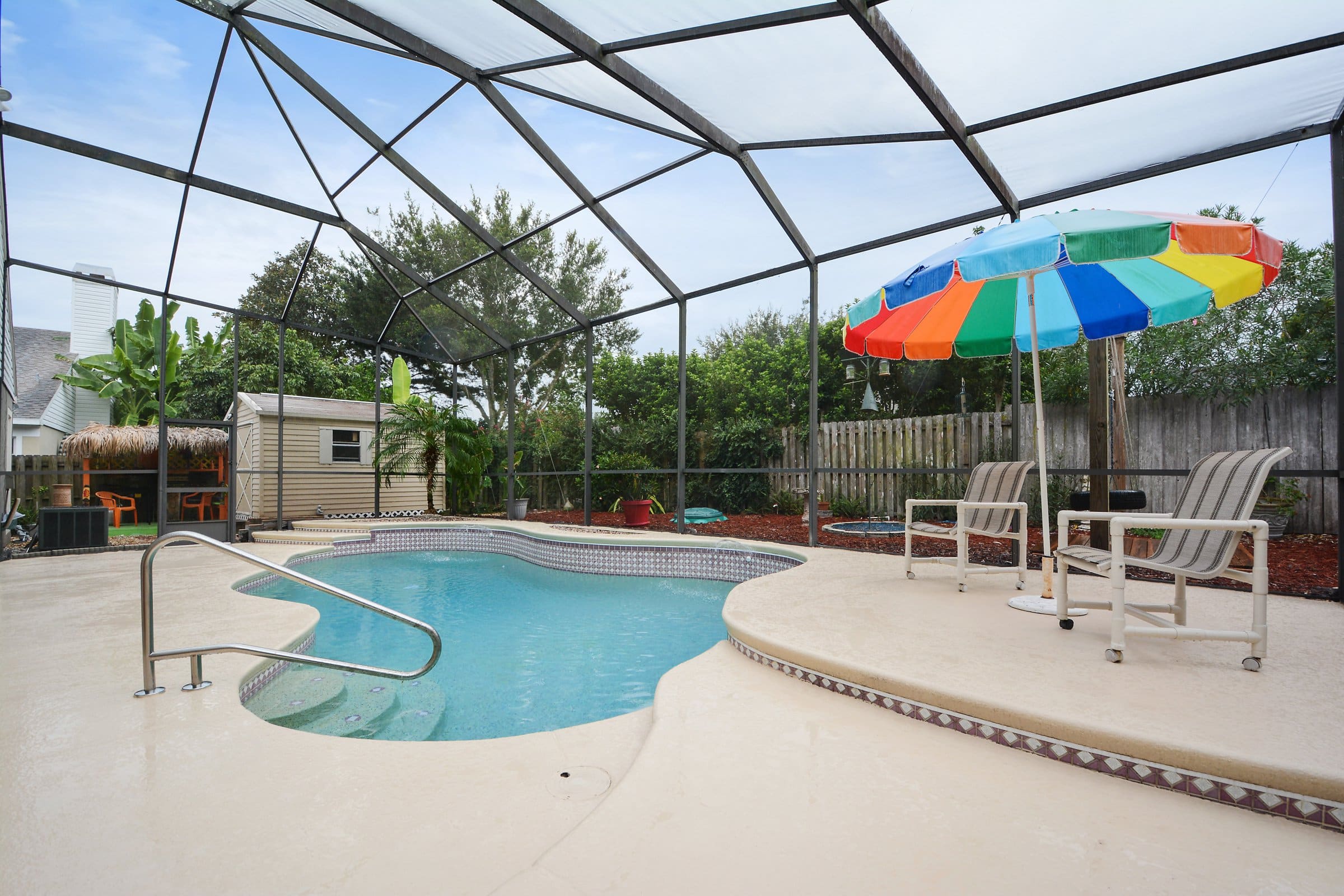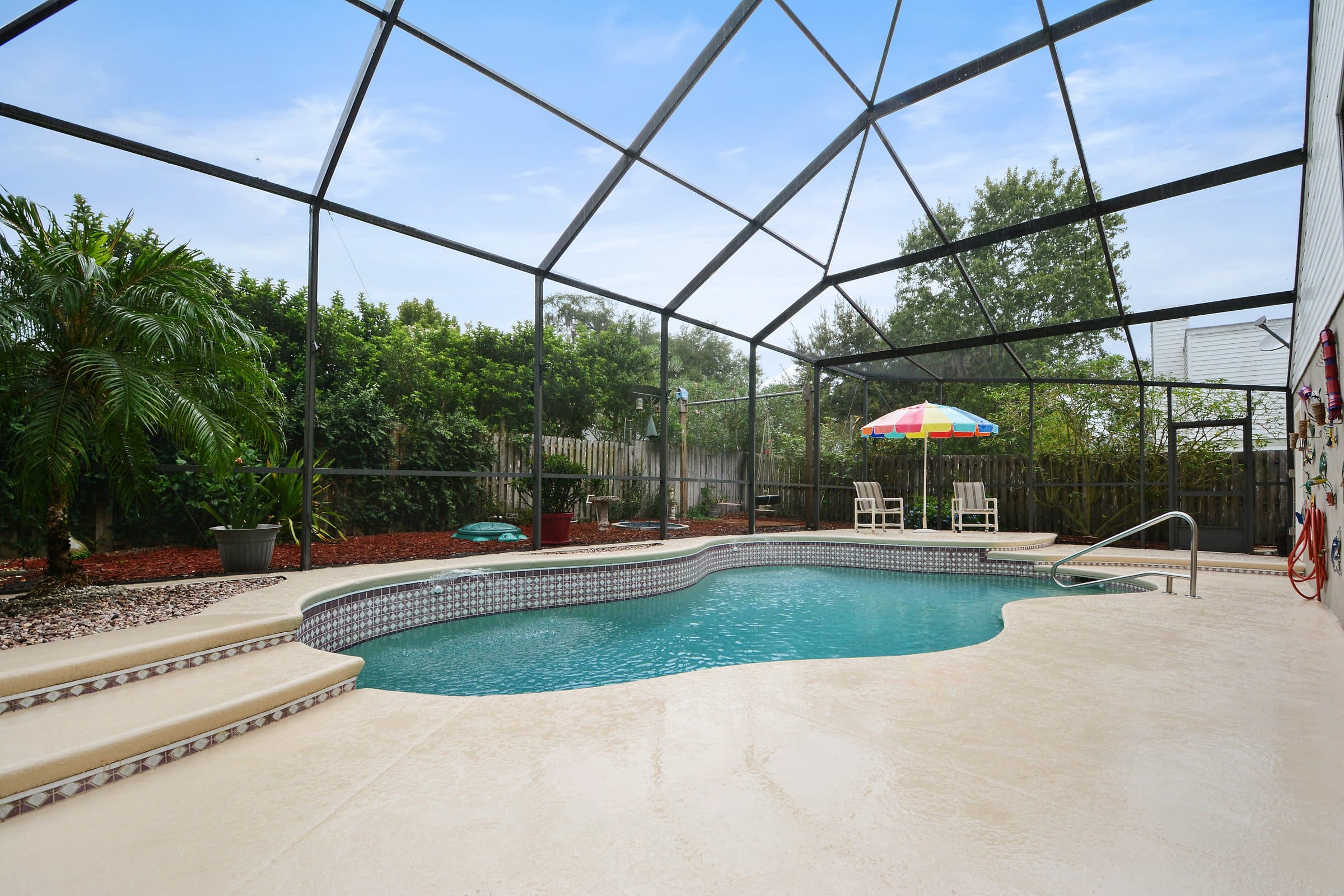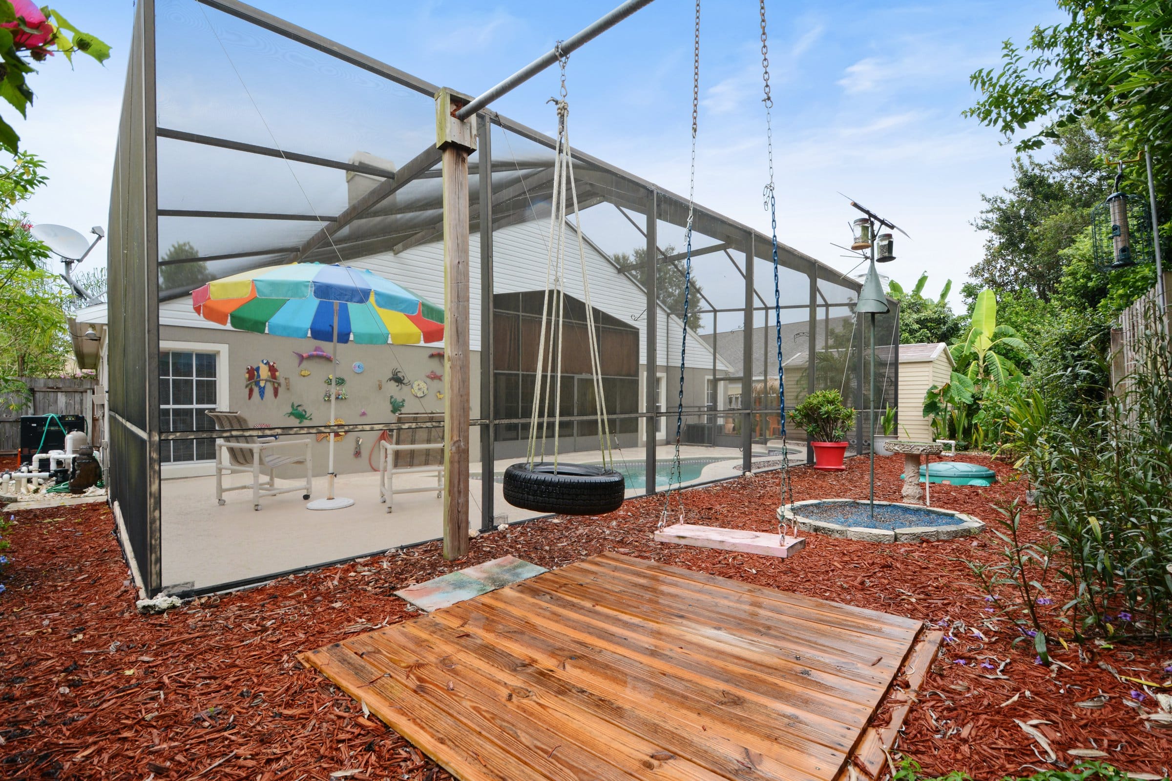 Step outside of 1842 Magies Ct and discover a large covered patio designed for comfortable outdoor living. This shaded space provides the perfect place to relax while staying out of the Florida sun. Beyond the patio, the screened pool area creates a fantastic space for entertaining. The heated pool features two decorative water features that enhance the relaxing atmosphere. Additionally, the spacious pool deck offers plenty of room for sunbathing and outdoor gatherings. Outside the screened enclosure, you will also find a storage shed and a swing set. As a result, the backyard offers both functionality and fun for everyone.