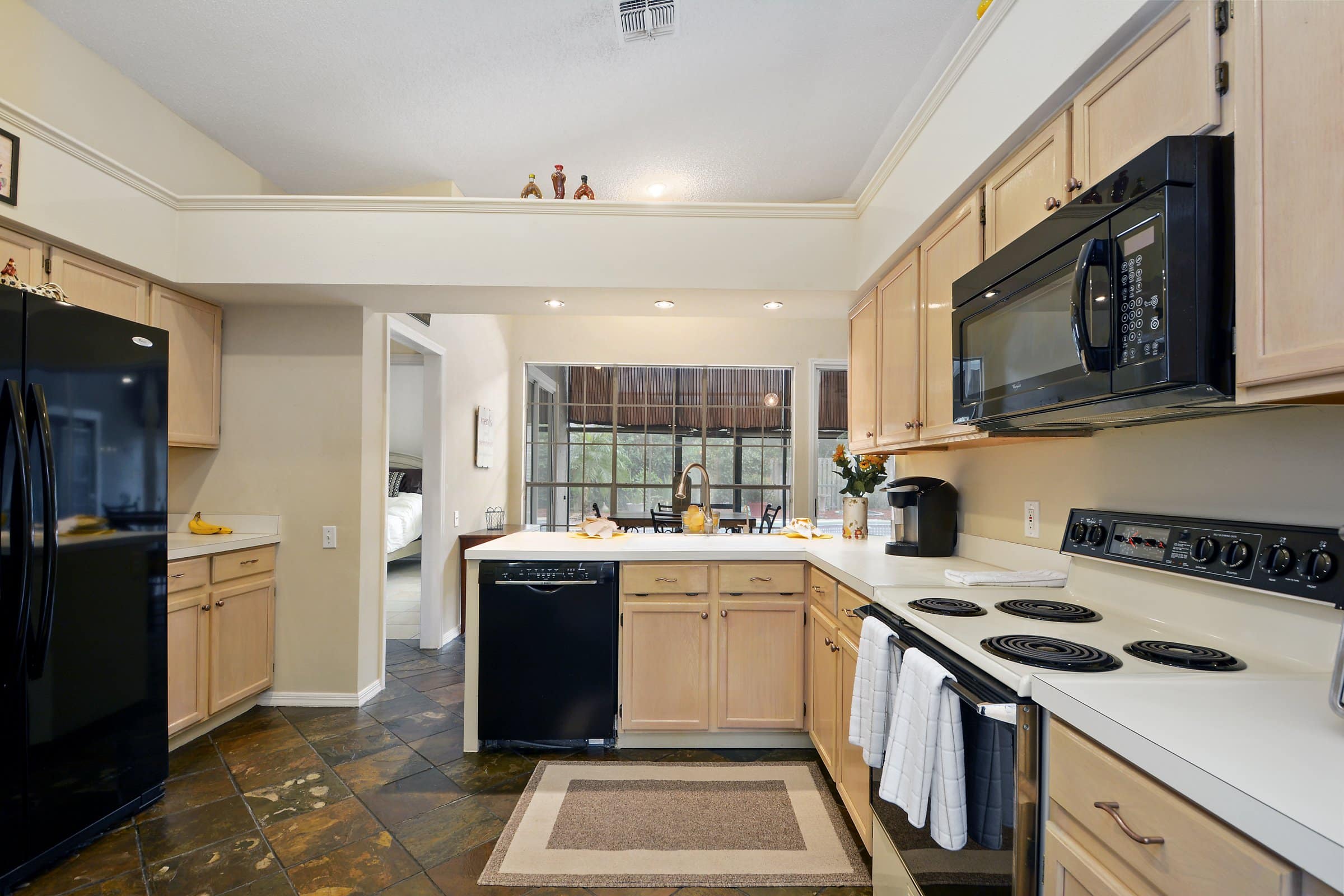 Just beside the family room at 1842 Magies Ct, the kitchen offers solid wood cabinetry and updated appliances. A convenient breakfast bar and eat-in area provide additional dining space. Furthermore, the layout allows easy connection between the kitchen and living areas. Nearby, the spacious primary suite offers a peaceful retreat. The bedroom includes patio access and generous room for furnishings. Inside the primary bathroom, you will find dual sinks, a garden tub, and a separate shower. A large walk-in closet also provides excellent storage.