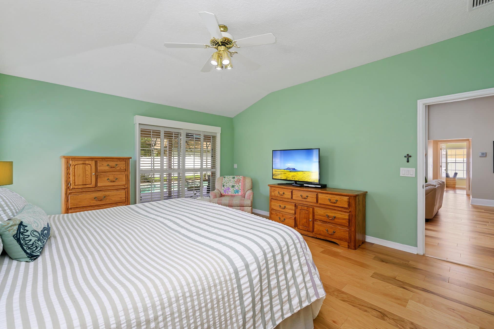 Located in Oviedo’s desirable Twin Rivers community, 2175 Inverness Ct is a beautiful home on the golf course side. This property boasts three bedrooms and two-and-a-half bathrooms, all situated on a thoughtful split-floor plan. Furthermore, the home includes an upgraded kitchen and stunning hickory wood flooring throughout the main living spaces. Out back, you’ll discover a private pool surrounded by a fully fenced yard, ideal for entertaining or relaxing. The moment you step inside, natural light, neutral paint, and an inviting layout greet you warmly. Moreover, plantation shutters and updated fixtures add charm and elegance. Clearly, this home combines functionality with timeless style.