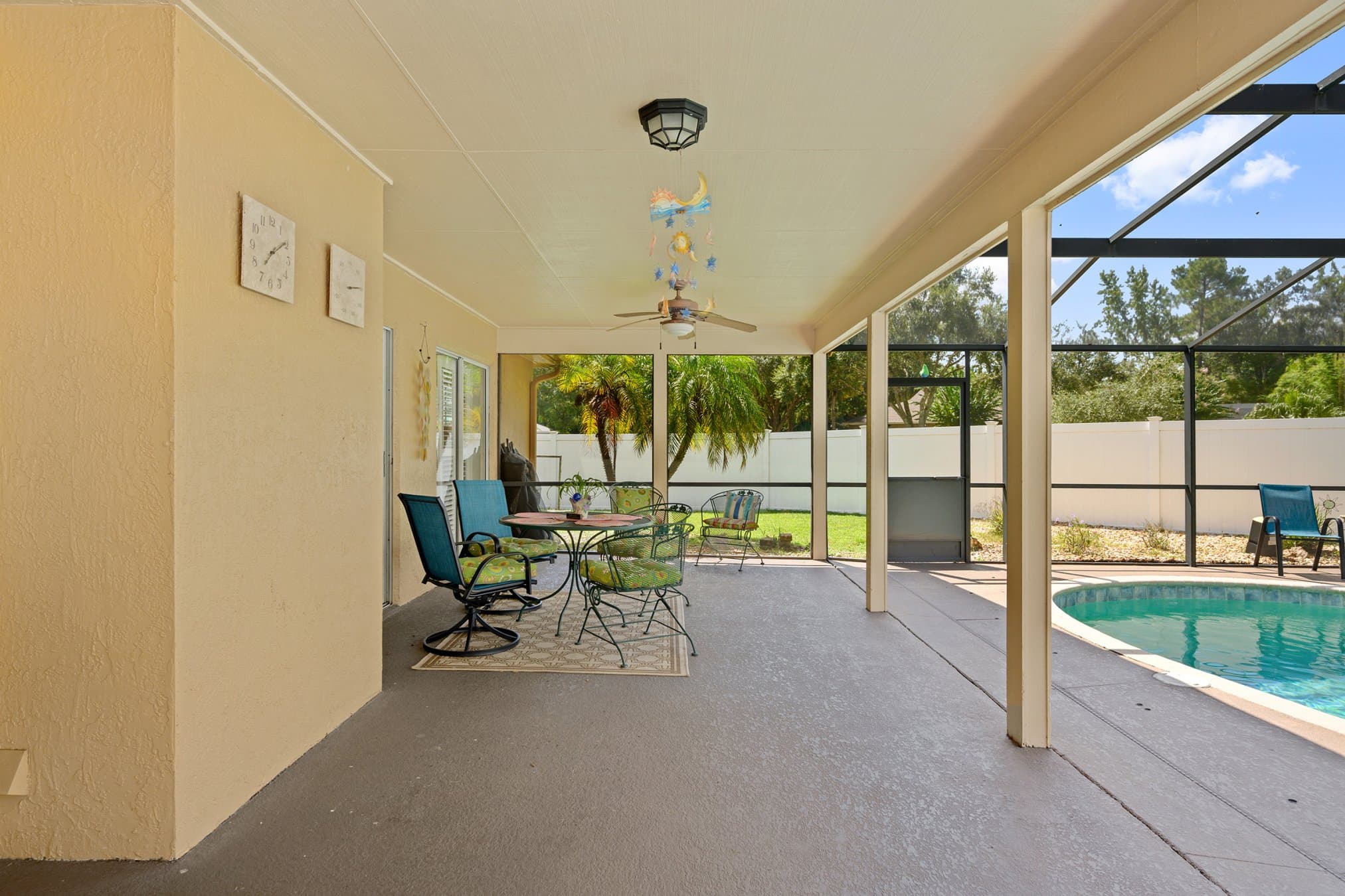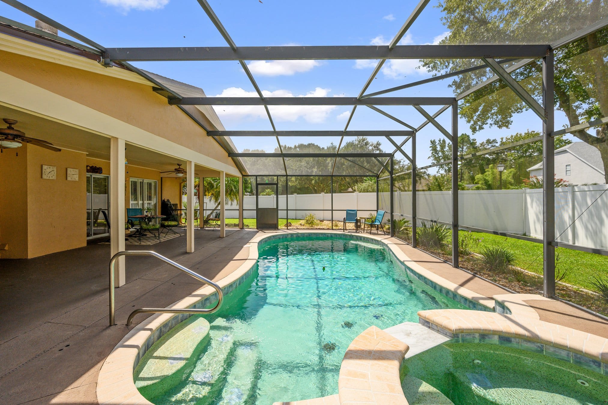 Step outside 2175 Inverness Ct and enjoy a backyard built for relaxation and fun. A covered patio with ceiling fans offers comfort during warm Florida days. Beyond that, the sparkling pool and spa provide the perfect escape for cooling off or exercising. Moreover, the fully fenced yard ensures privacy and security, making it great for pets or gatherings. Because the home sits on a corner lot, the yard feels especially spacious. Whether swimming laps, enjoying a volleyball game, or lounging poolside, this backyard delivers endless enjoyment. Clearly, the outdoor living space is one of this property’s finest features.
