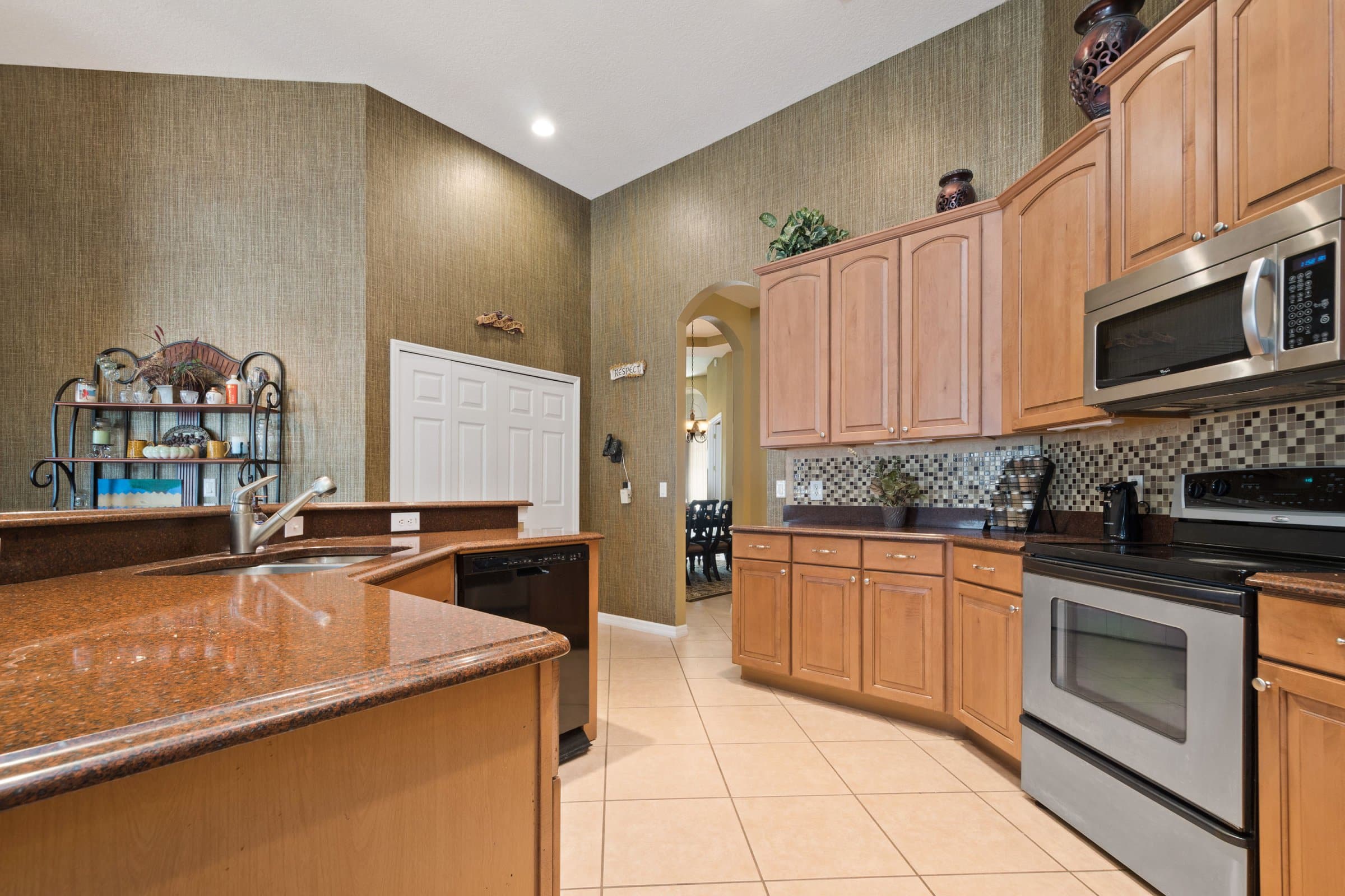 Moving through an elegant arched entryway, the kitchen immediately becomes the heart of 240 Daventry Dr. It features 42-inch solid wood cabinetry with a built-in wine rack, granite countertops, stainless steel appliances, and a convenient closet pantry. In addition, the island breakfast bar overlooks the dinette and family room, making meal prep and gatherings effortless. Meanwhile, the family room offers soaring ceilings, a cozy wood-burning fireplace, and expansive views of the backyard. Consequently, these spaces encourage connection while maintaining warmth and comfort.
