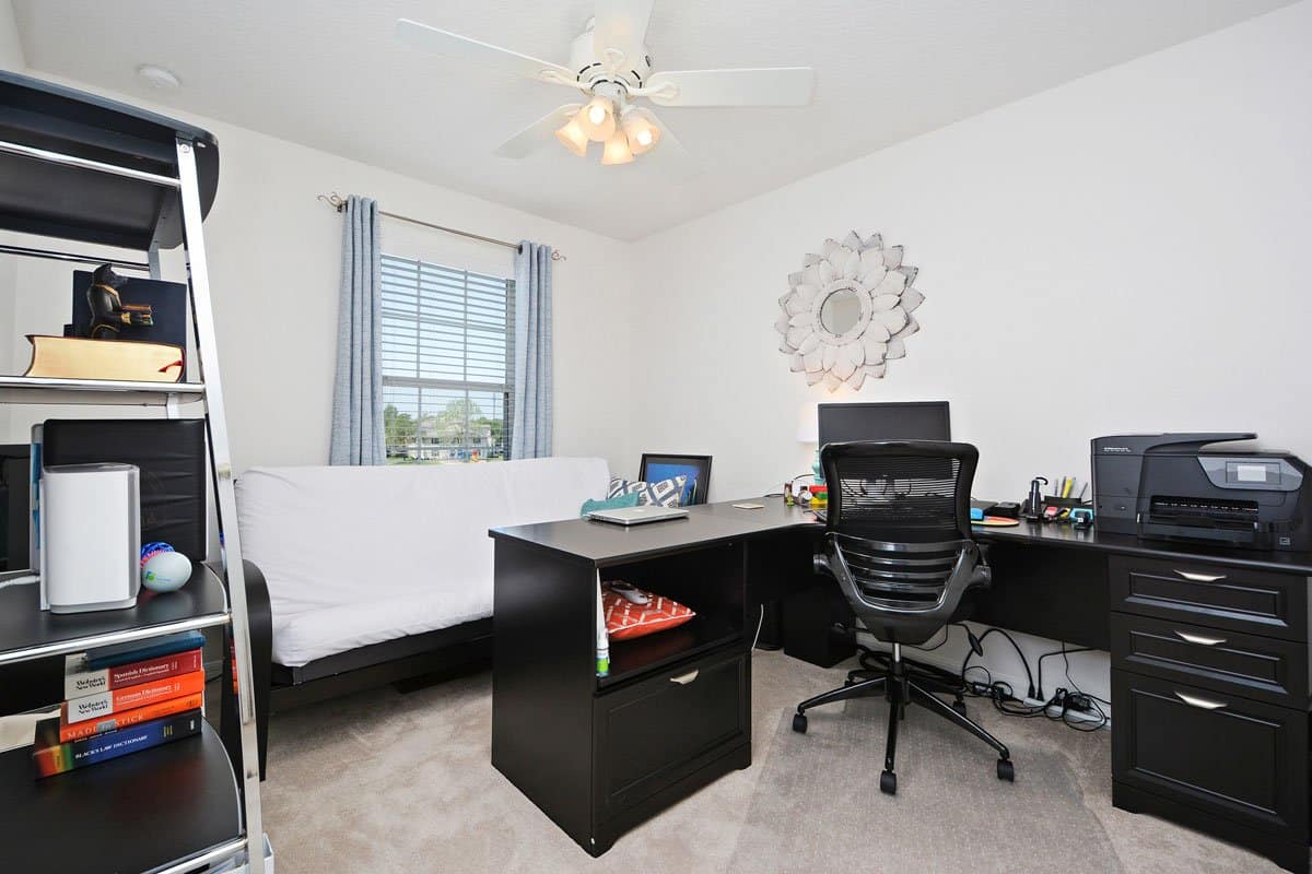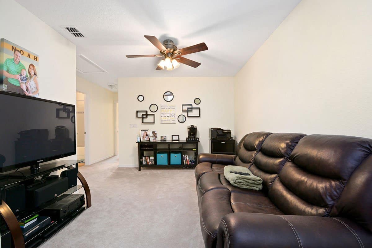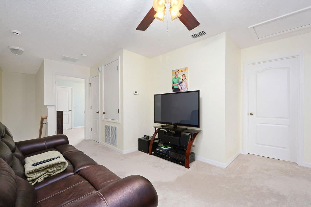 Upstairs of 2808 Oakville Pl, neutral carpeting continues the clean aesthetic. Moreover, the second floor features three bedrooms and two full bathrooms, offering both comfort and privacy. In addition to the bedrooms, a versatile loft provides the perfect flex space for a media room, play area, or secondary lounge. Meanwhile, a bonus room just off the living area downstairs works beautifully as a home office or den. Consequently, this thoughtful floor plan adapts easily to your lifestyle needs.