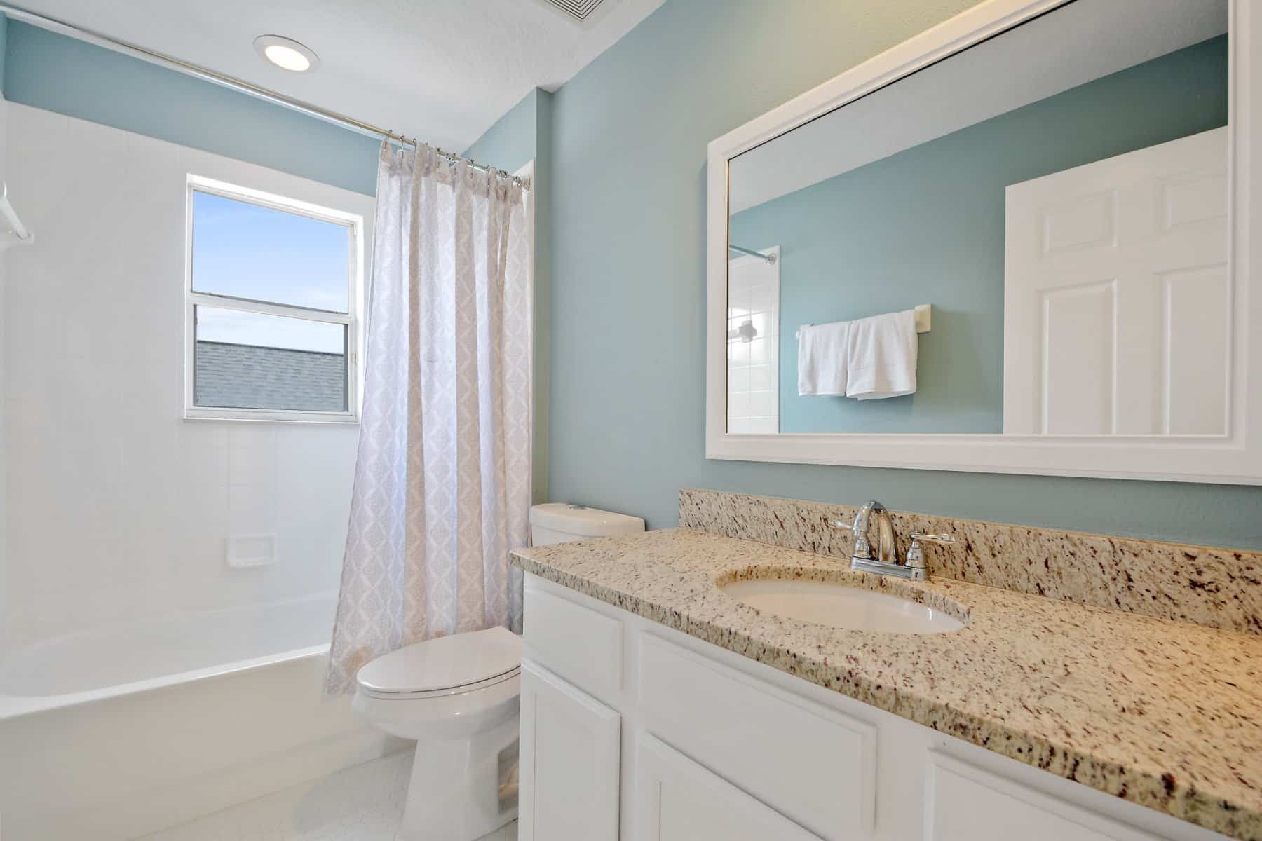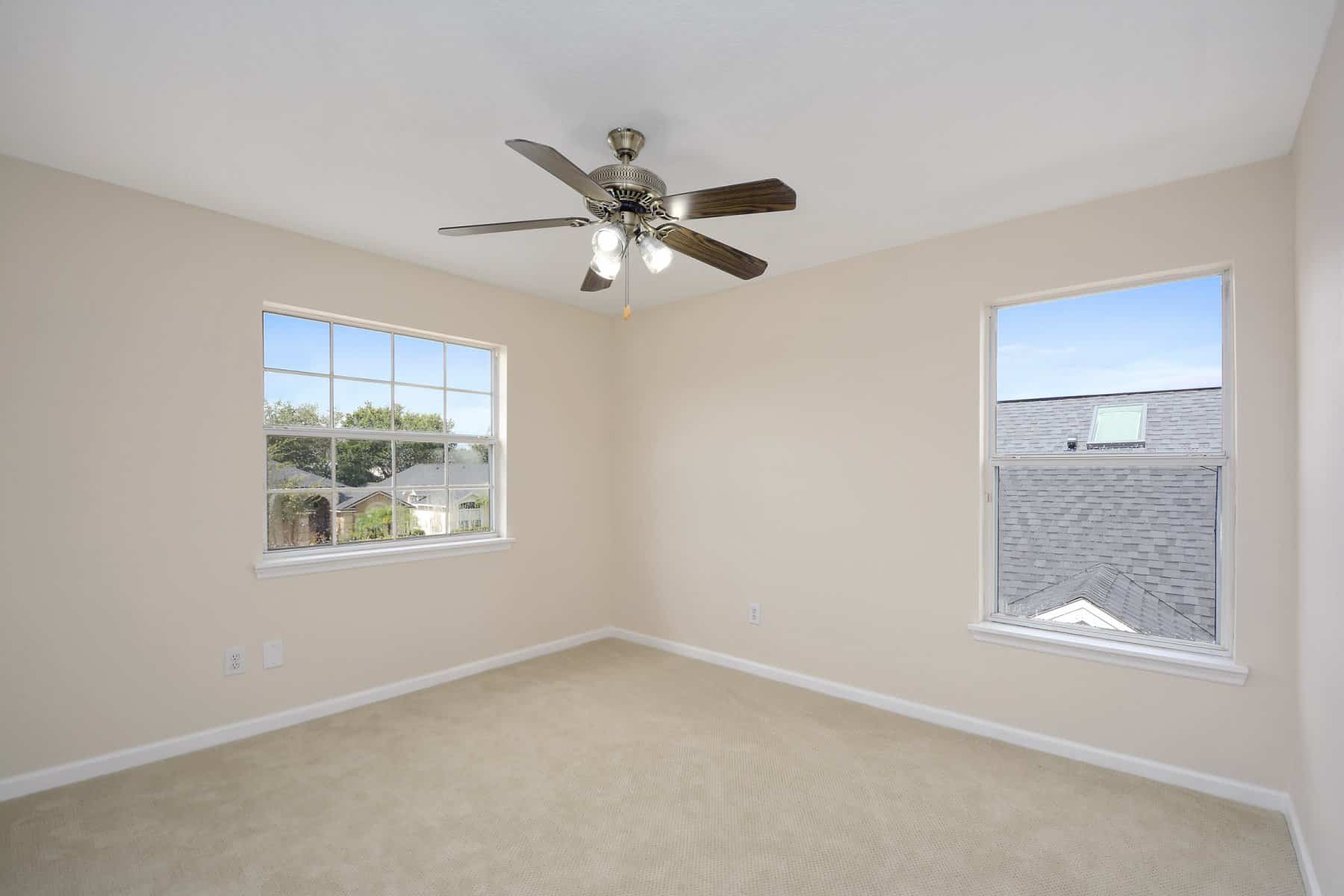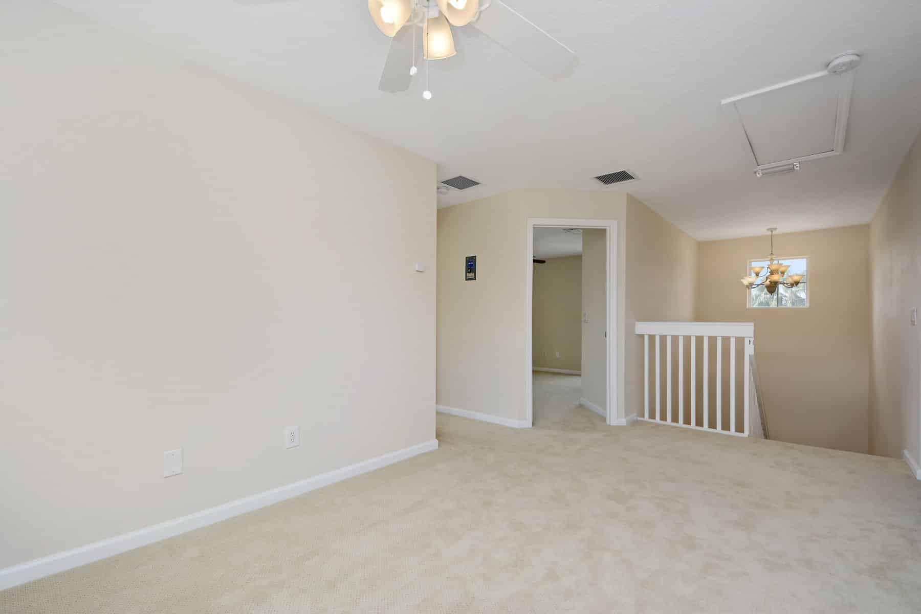 On the opposite side of the entry at 2862 Sweetspire Cir, past the staircase, you will find a convenient half-bathroom and a dedicated laundry room. Upstairs, a versatile loft or bonus room provides flexible space for a media room, playroom, or home office. Meanwhile, the bedrooms follow a split layout with two bedrooms on each side of the loft, which adds privacy and balance to the floor plan. Additionally, each bedroom offers generous space and large closets. The two secondary bathrooms showcase stylish upgrades, including modern tile, updated vanities, and refreshed finishes. Throughout the home, new wood-look tile and carpeting add a fresh, updated feel.