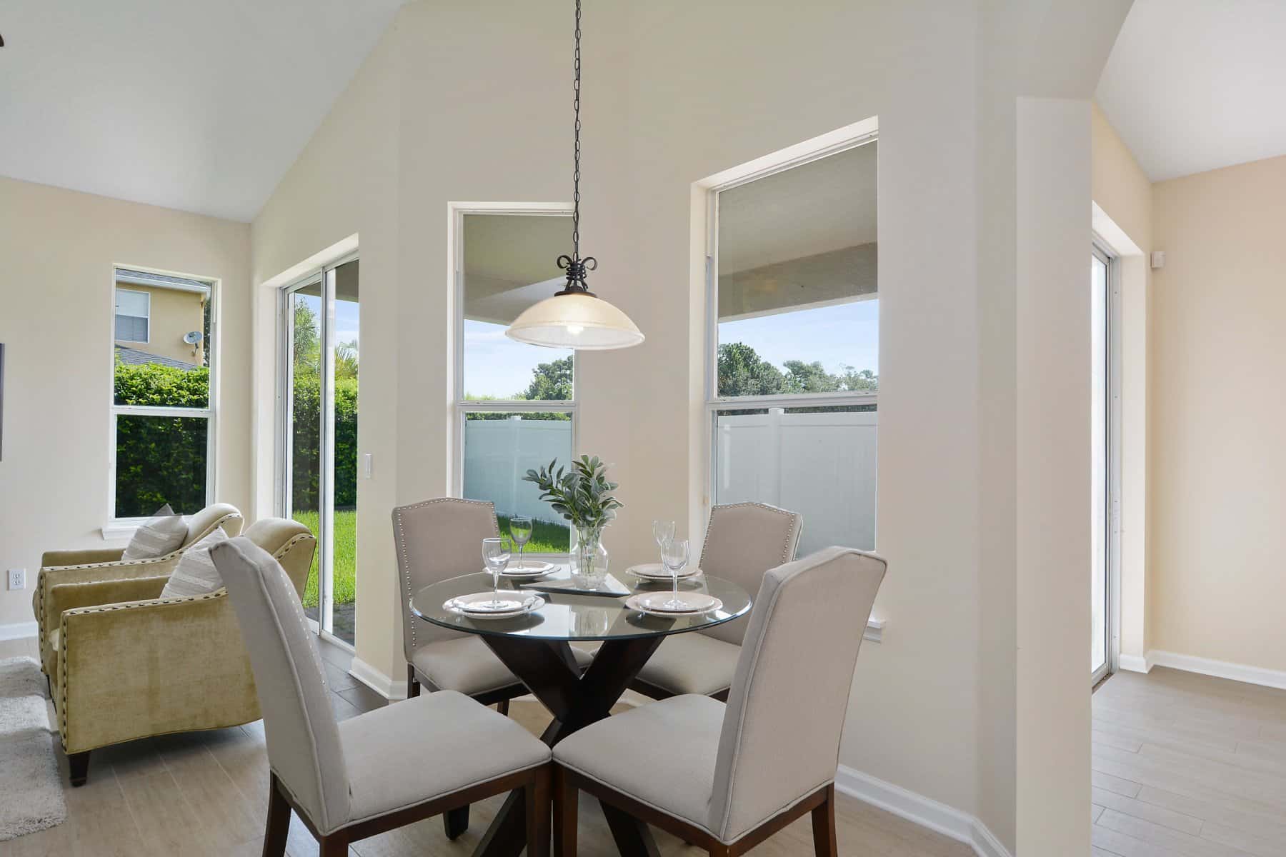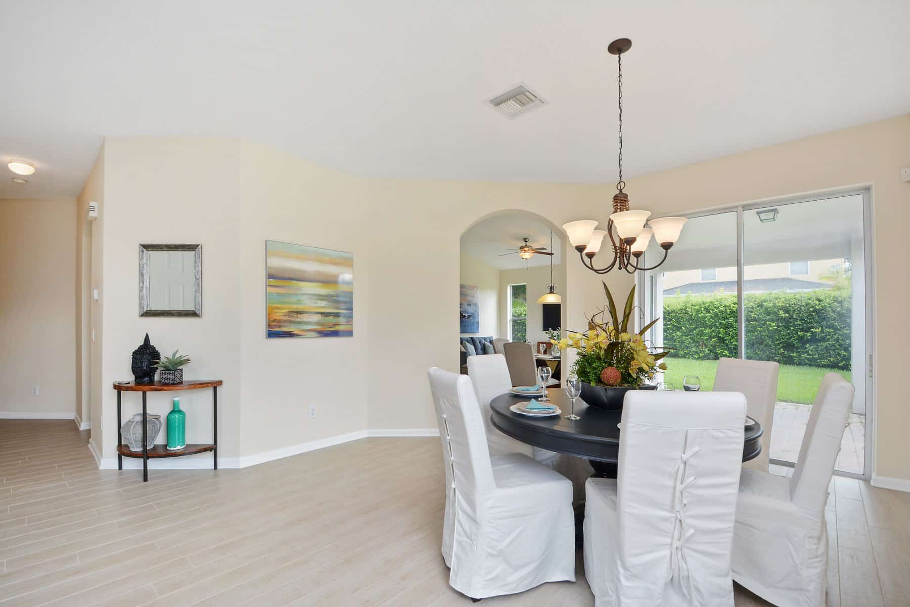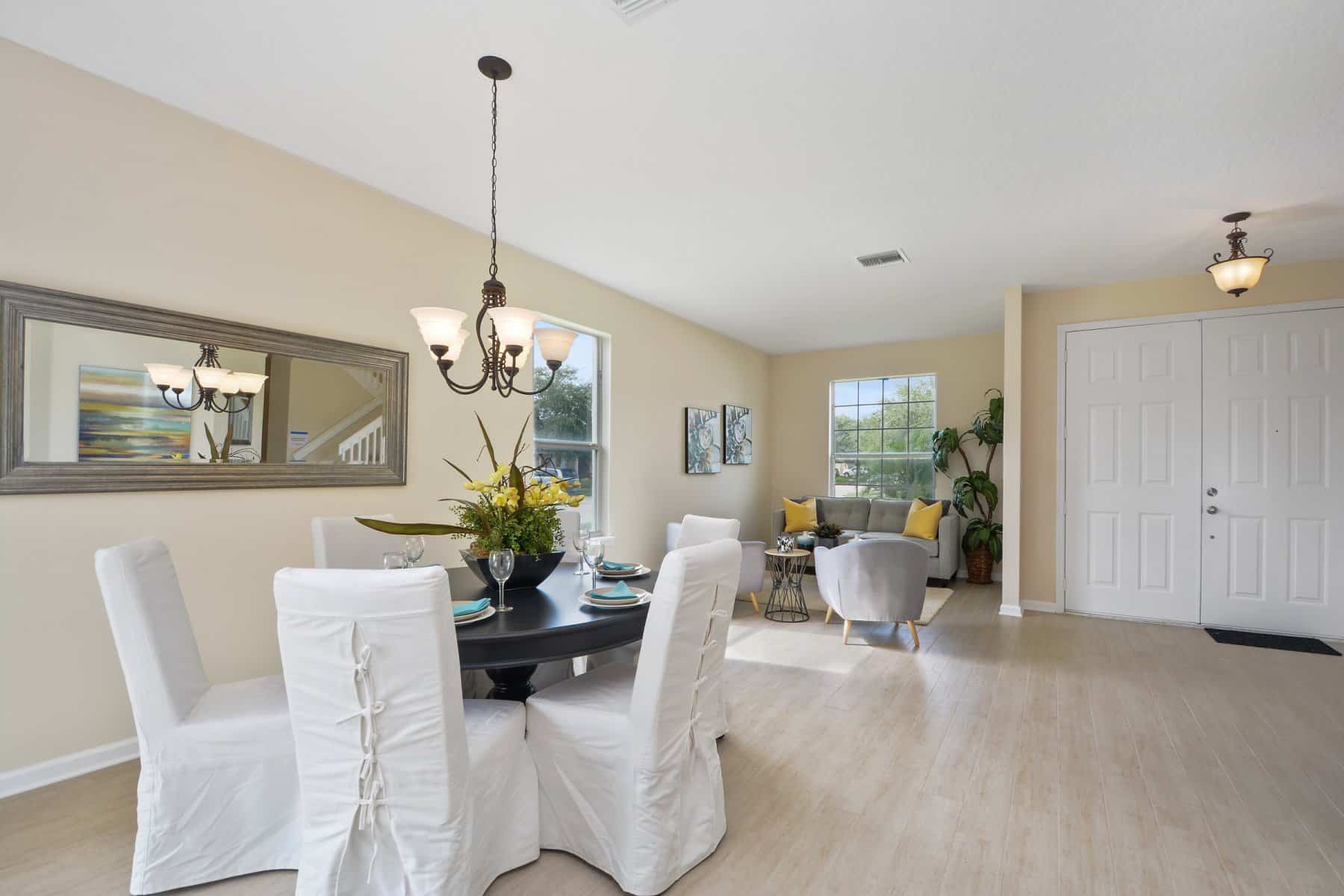 To begin, the right side of the entryway of 2862 Sweetspire Cir opens into a combination formal living and dining room designed for gatherings and special occasions. The formal living room sits at the front of the home, while the dining room flows naturally toward the kitchen. Furthermore, sliding glass doors from the dining room lead directly to the covered patio, creating seamless indoor-outdoor living. Just beyond, an arched entryway guides you into the spacious family room and kitchen area. Here, the family room overlooks the backyard and provides a comfortable place to relax, entertain guests, or spend time with family.