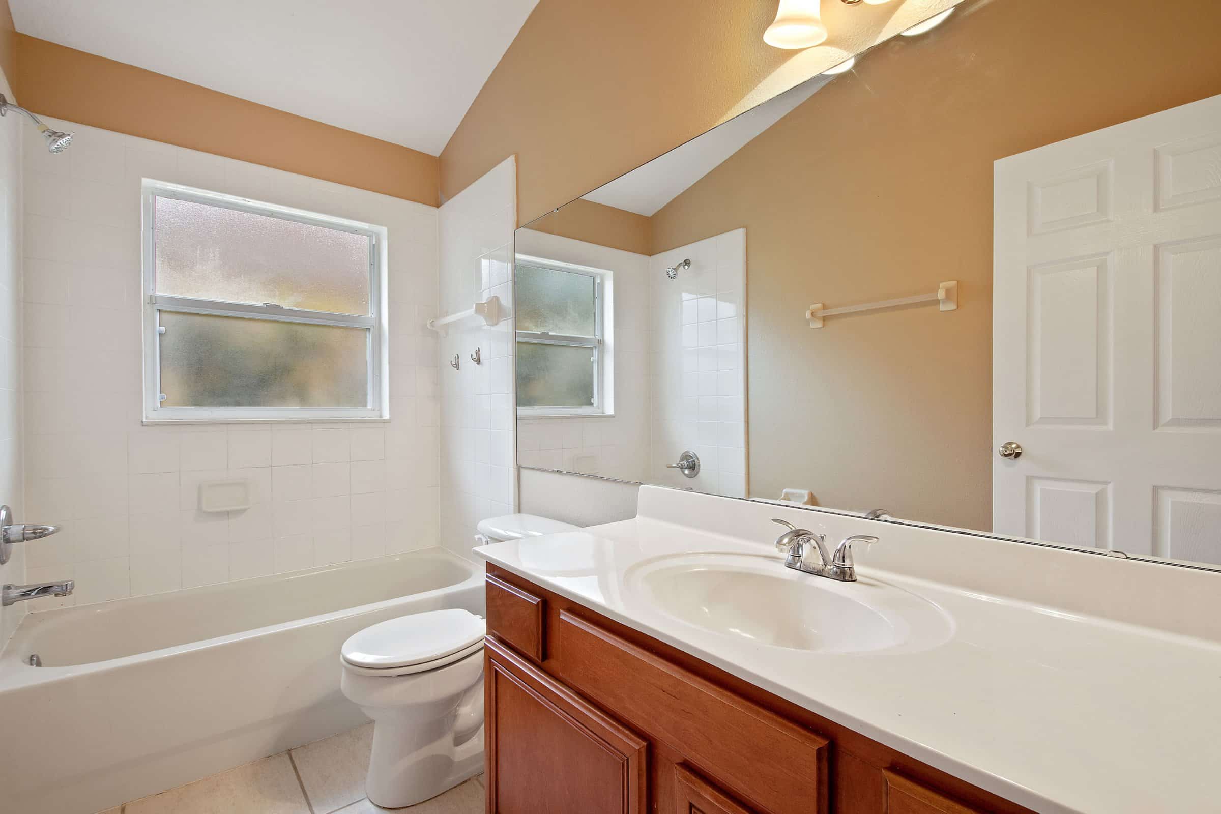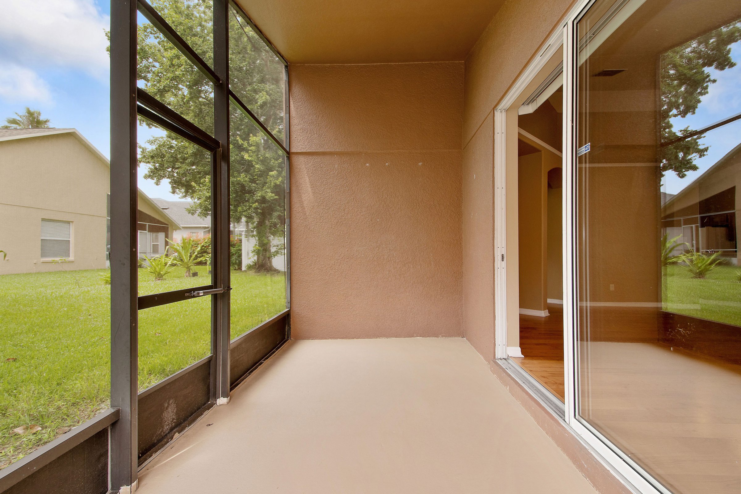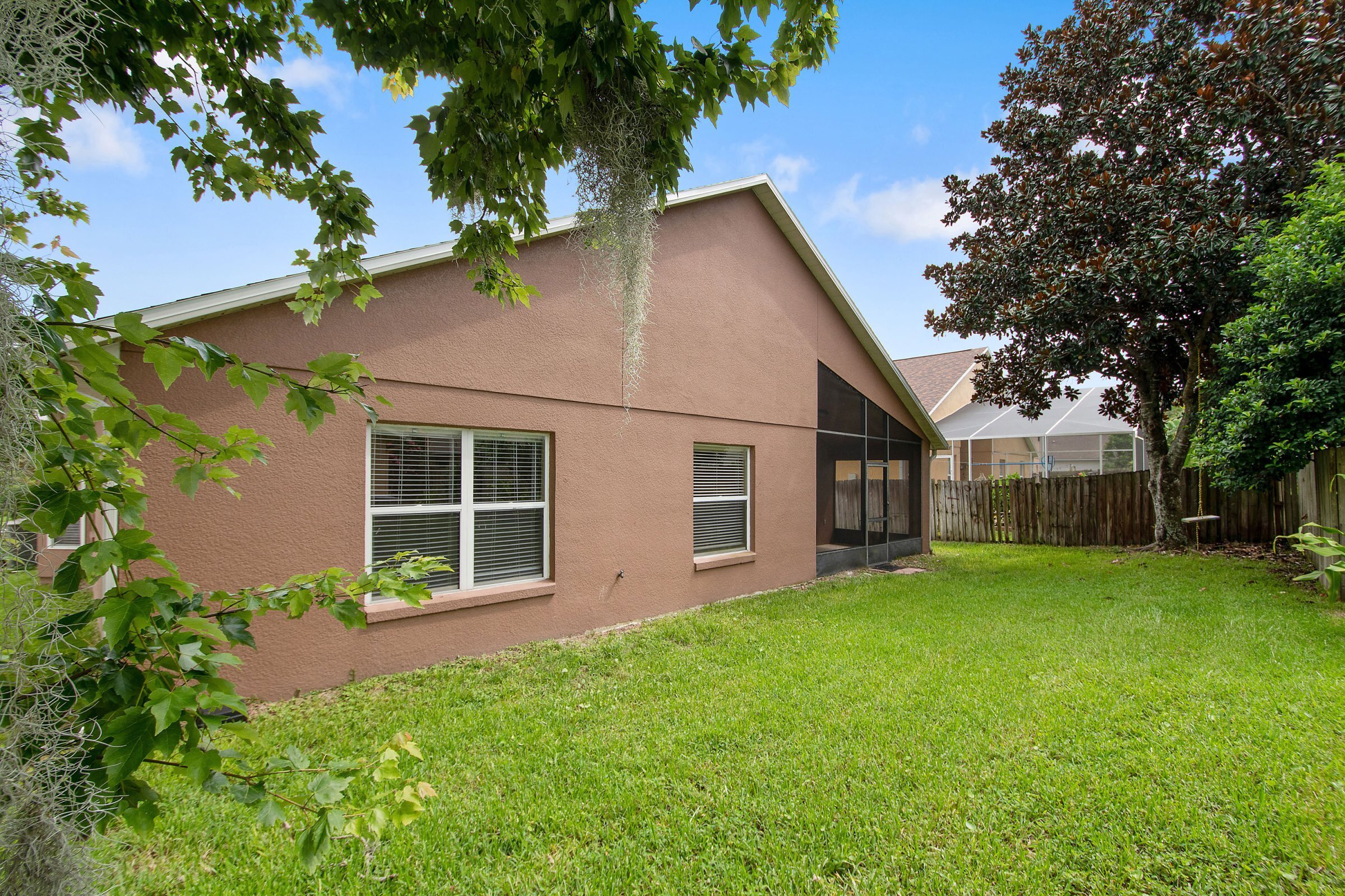 Sliding glass doors from the family room lead out to a charming covered and screened patio, perfect for enjoying Florida’s weather year-round. The backyard offers an almost fully fenced space, requiring only minimal additions for full enclosure. In addition, a large magnolia tree provides abundant shade and creates a wonderful spot for a swing or outdoor play. This outdoor area offers both privacy and potential for future customization.