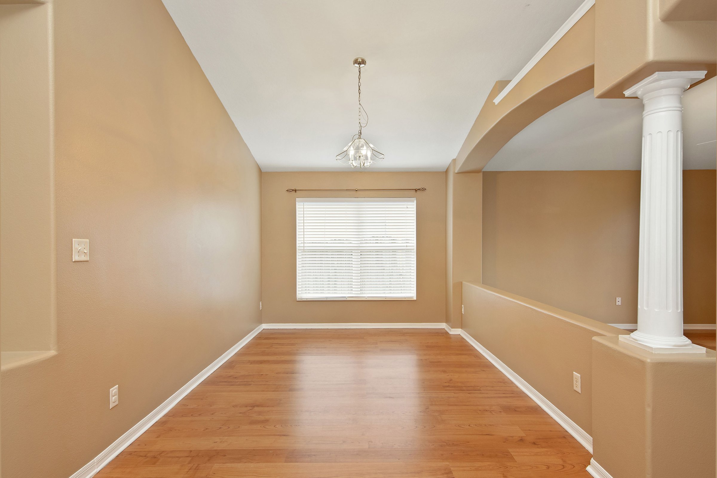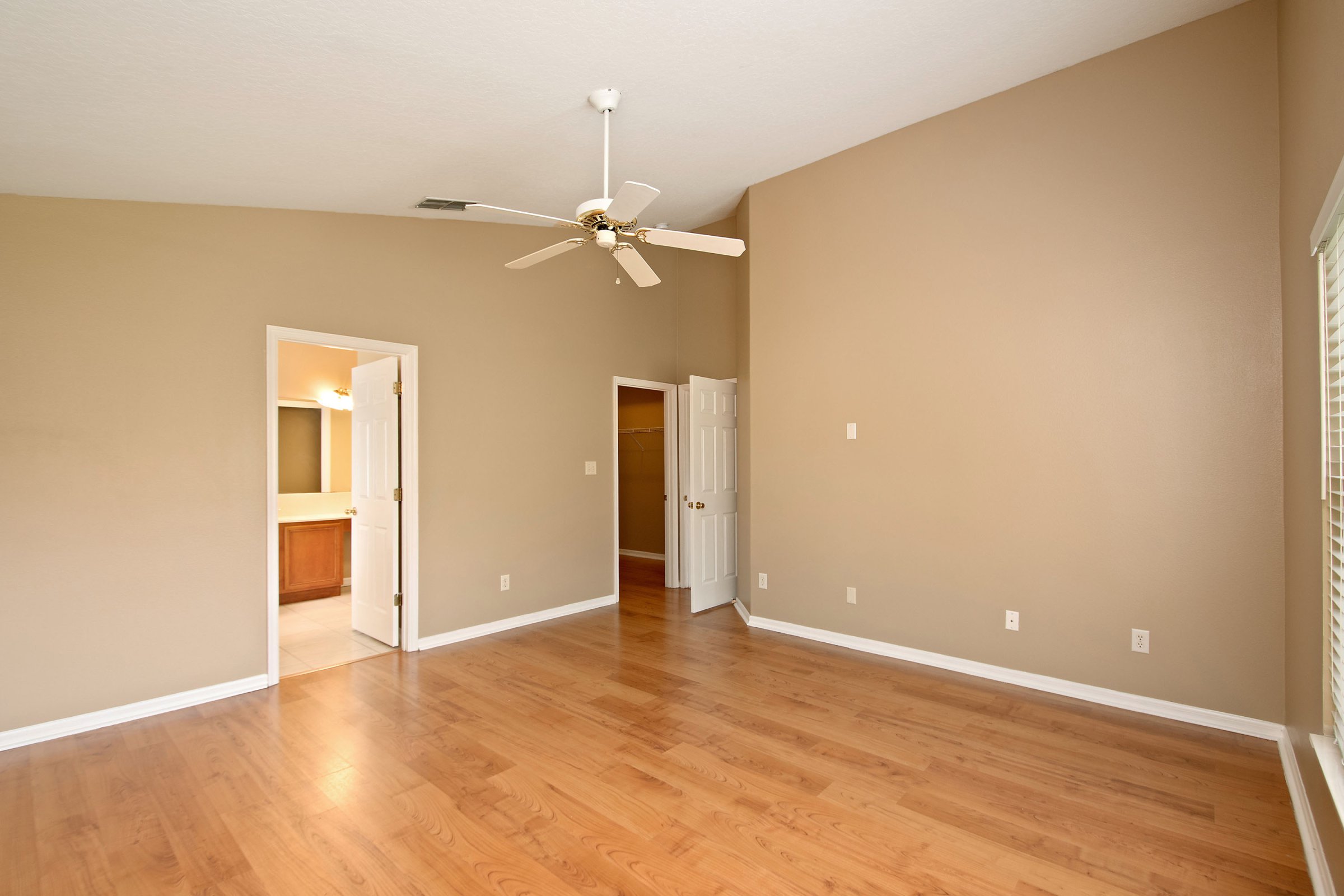 As you step through the front door of 2883 Strand Cir, a spacious foyer immediately welcomes you inside. To the left, a hallway leads to two secondary bedrooms and a full bathroom, creating a private space for family or guests. The split floor plan places the primary suite toward the back of the home, offering added privacy and separation. Additionally, neutral paint colors and consistent flooring throughout enhance the home’s cohesive and open feel. This layout maximizes space while maintaining comfort and functionality.