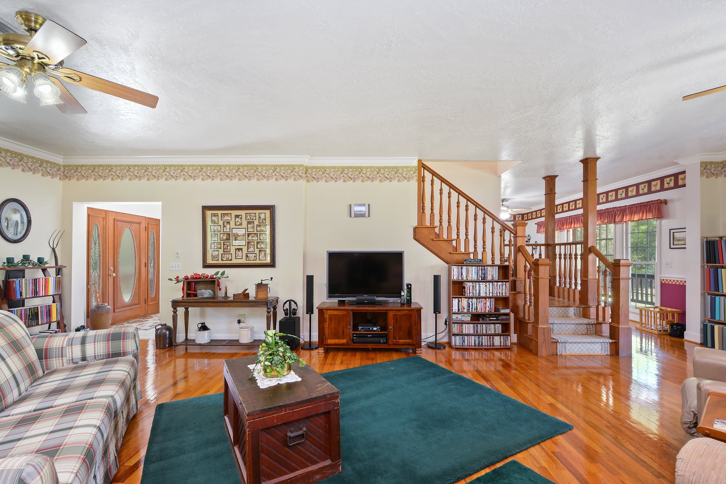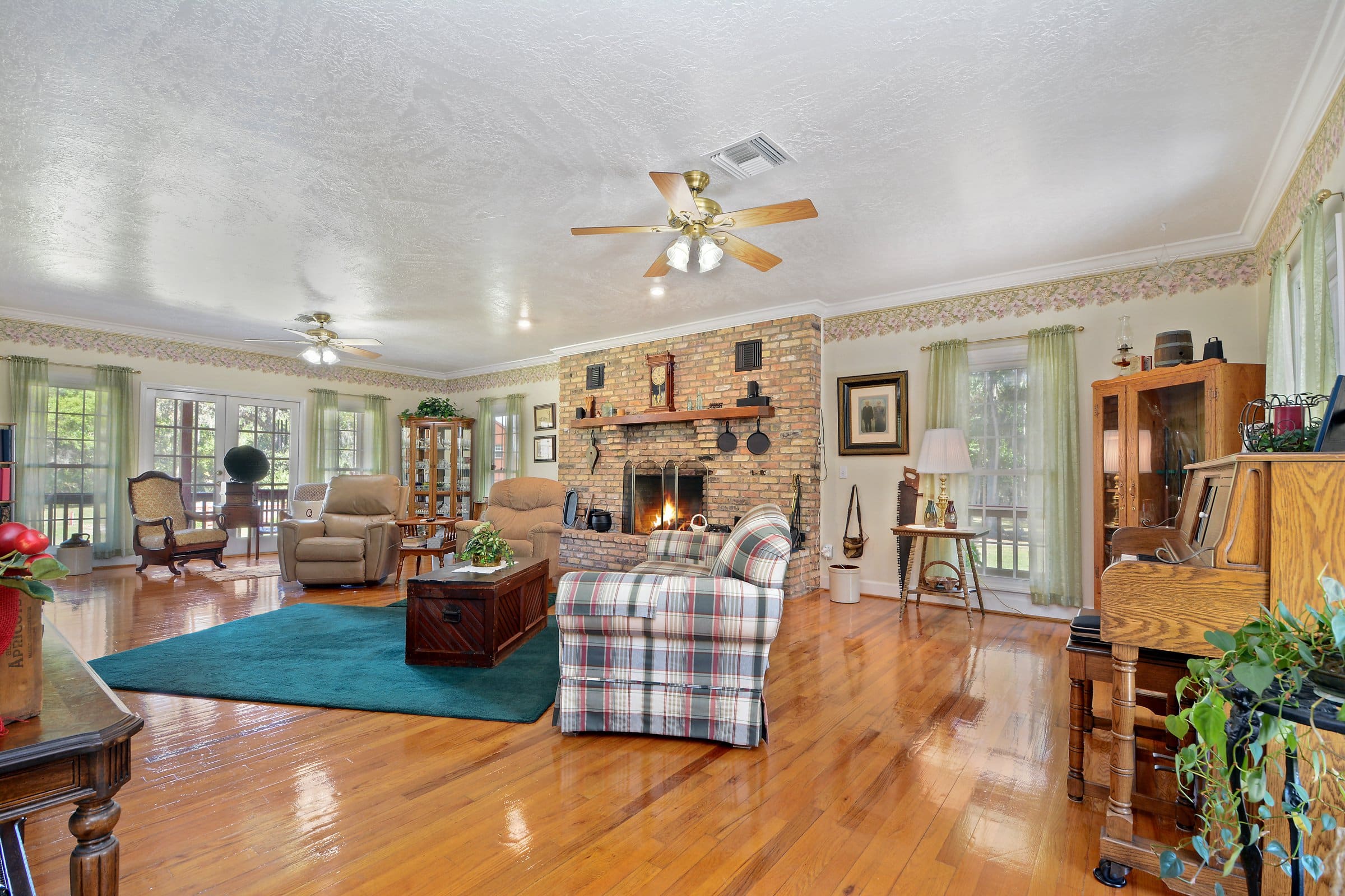 As you step inside 3050 Freedom Trl, you’ll immediately notice the warmth and craftsmanship throughout its 3 bedrooms and 2.5 bathrooms. Hardwood flooring, elegant crown molding, and wood-burning fireplaces add timeless character. To begin, enter through the foyer and move to the right into the spacious family room. There, large windows overlook the property while filling the space with natural light. At the same time, the fireplace creates a cozy focal point ideal for gatherings.