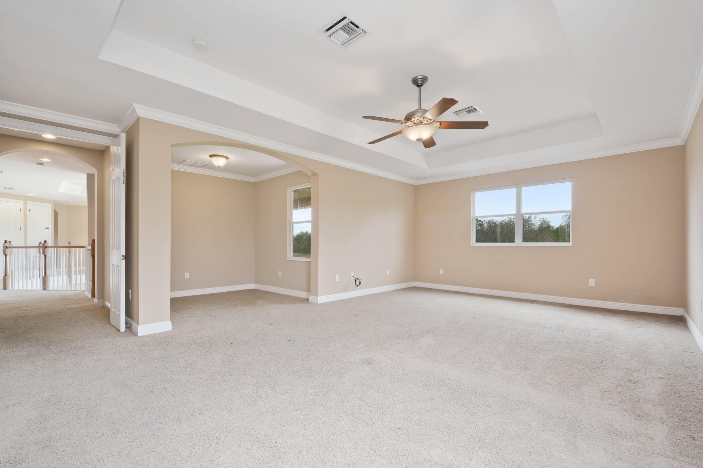 Inside 3069 Heirloom Rose Pl, you’ll discover soaring two-story ceilings and dramatic windows that flood the formal living room with natural light. Furthermore, architectural details like crown molding, tray ceilings, and elegant columns add a layer of refined sophistication to every room. The gourmet kitchen serves as the heart of the home, featuring granite countertops, stainless steel appliances, double ovens, and a functional butler’s pantry. The bedrooms and additional office space provide incredible versatility for large families or those working from home. Meanwhile, the open-concept family room offers a warm atmosphere with arched entryways and serene conservation views. Altogether, this interior delivers a perfect harmony of scale and style.