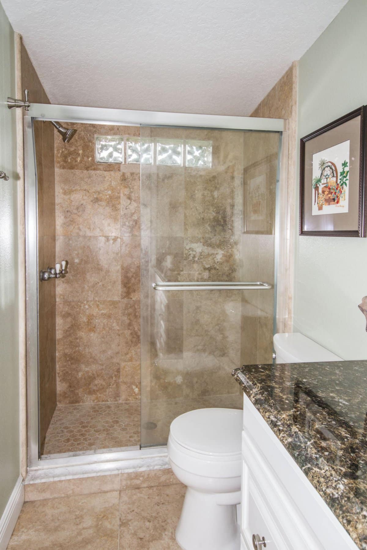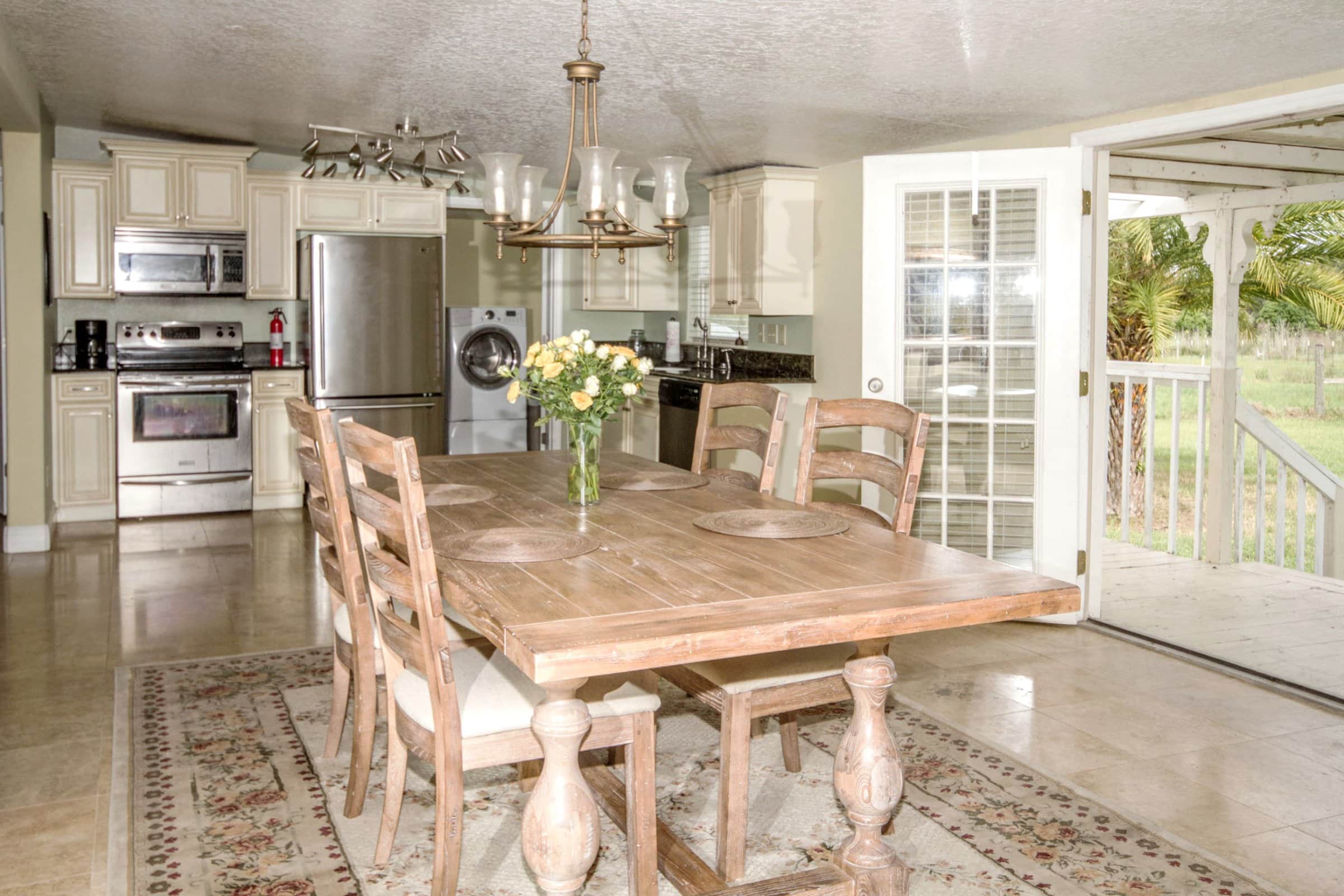Inside 326 Sandy Top Ln, you’ll discover a spacious family room that features elegant Travertine flooring and a stone-faced wood-burning fireplace. Furthermore, the open layout invites natural light to flood the living areas, creating an inviting atmosphere for relaxation. The upgraded kitchen serves as the heart of the home, boasting antiqued cabinetry, granite countertops, and stainless steel appliances. Adjacent to the kitchen, a second living room offers a perfect quiet sitting area or library space. Meanwhile, the master suite provides a peaceful escape with a walk-in closet and a beautifully renovated bathroom. Altogether, the interior finishes deliver a seamless blend of rustic charm and sophisticated updates.