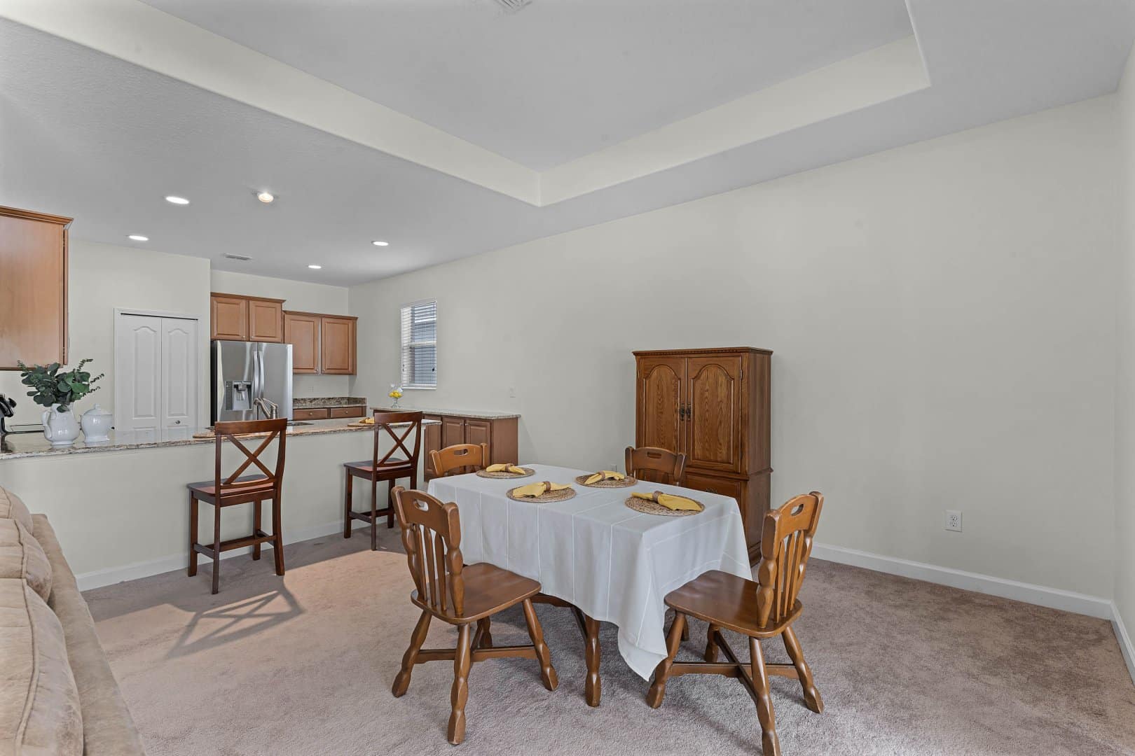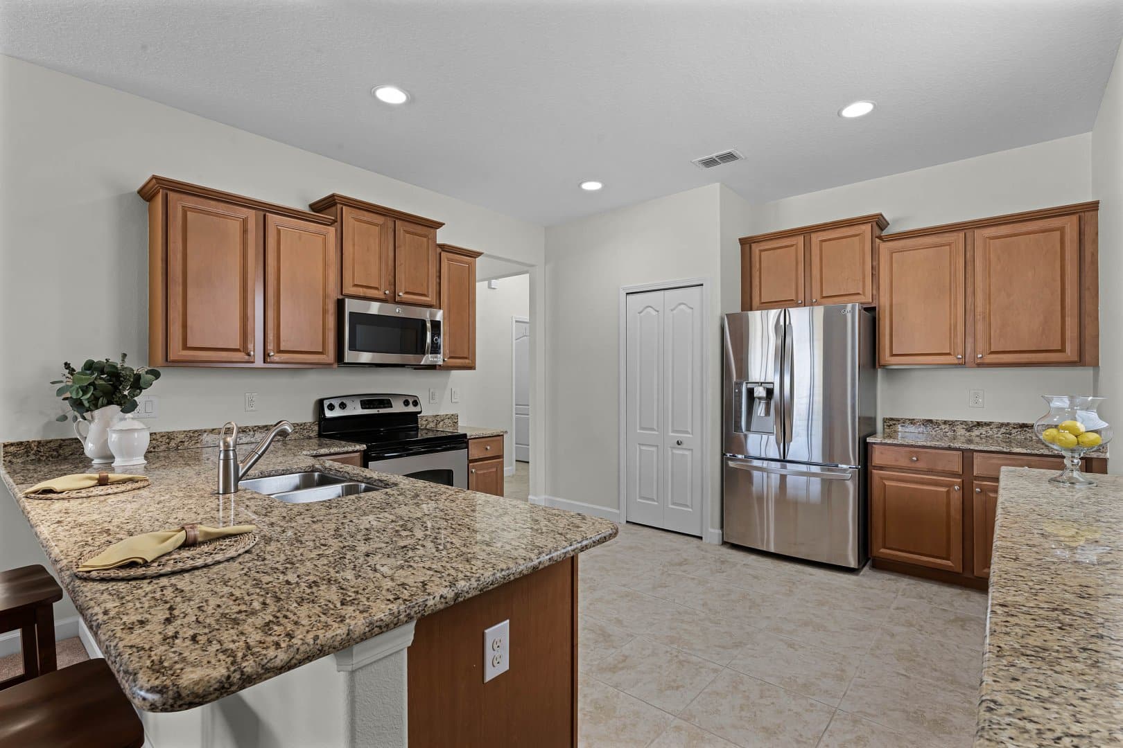 The kitchen impresses with stainless steel appliances, ample cabinetry, and extensive countertops perfect for meal prep and casual dining. The peninsula bar adds extra seating, while the walk-in pantry provides plenty of storage. Stay inspired in a kitchen designed for both functionality and style.