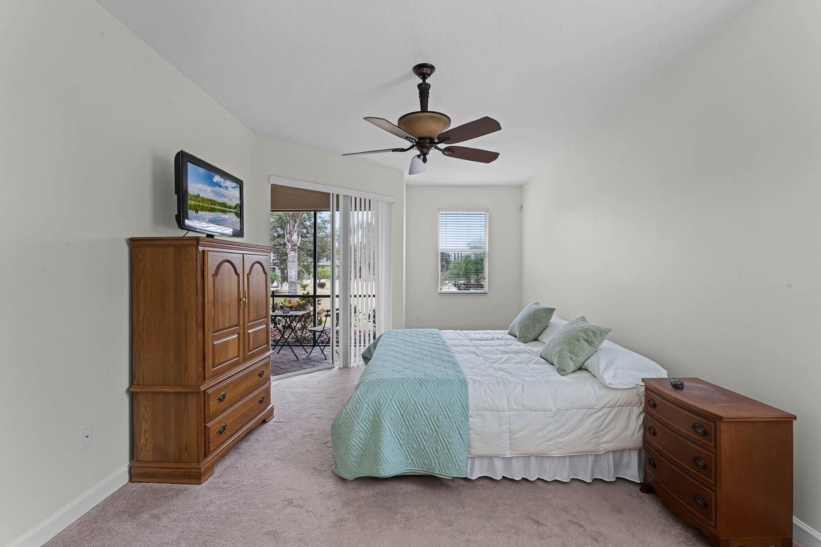 Tucked away for privacy, the master suite at 3667 Caladesi Rd boasts direct access to the patio, his-and-hers walk-in closets, and a spa-like en-suite bathroom featuring dual vanities, a garden tub, and a walk-in shower. It’s your personal sanctuary within this vibrant 55+ community.