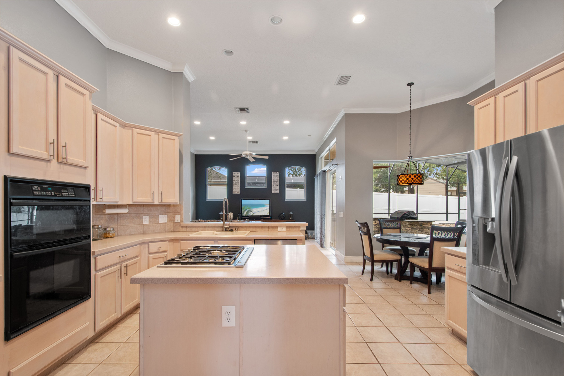 As you continue through 5725 Oak Lake Trl, you’ll discover a kitchen designed for both function and style. Sleek 42-inch cabinetry, stainless steel appliances, and a built-in range create a chef’s dream workspace. Moreover, the island and breakfast bar provide excellent spots for casual dining or morning coffee. Ample countertop space ensures plenty of room for cooking and entertaining with ease. The adjacent family room connects seamlessly, encouraging togetherness and effortless gatherings. Furthermore, large windows flood the space with natural light, enhancing its inviting atmosphere. For more about living in Oviedo, explore Visit Orlando.