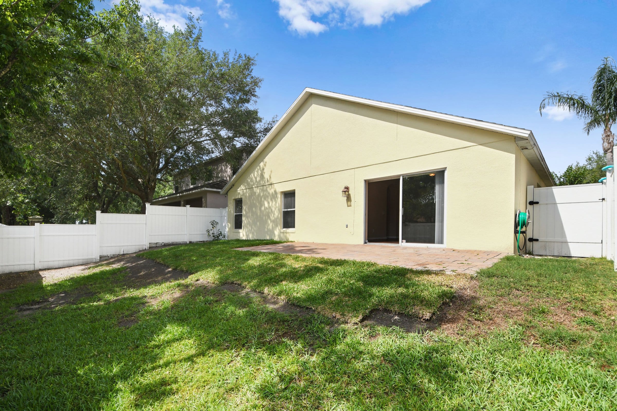 A separate hallway leads to two secondary bedrooms and the second bathroom, offering privacy and comfort for family members or guests here at 887 Nonastone Run. Each bedroom benefits from the same thoughtful finishes found throughout the home. Step outside to discover a spacious birdcage paver patio overlooking a fully fenced backyard with fresh new sod. This outdoor space is perfect for relaxing, entertaining, or enjoying Florida’s sunshine. Consequently, the backyard serves as a private retreat for both quiet evenings and lively gatherings.